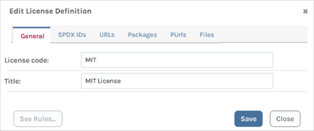 Like Artifactory, ProGet has a large, inbuilt database of licenses, curated from a number of sources such as the SPDX License List. Licenses contain basic information, including the SPDX IDs and URLs. They can also embed license files.